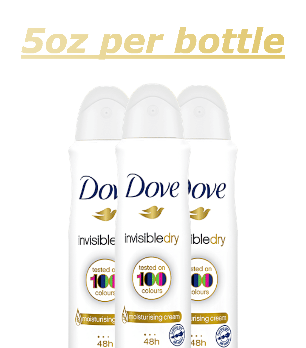 Dove Invisible Dry Spray, 150ml per bottle, 3 bottles total